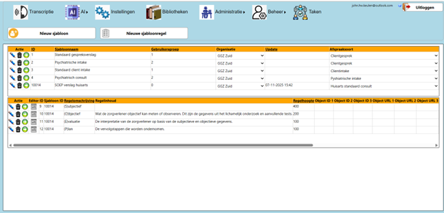 Er kunnen meerdere sjablonen ingesteld worden. Middels de afspraaksoort kan een behandelaar een sjabloon kiezen die het beste past.